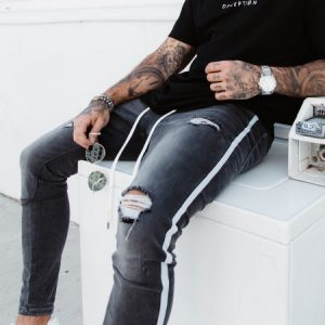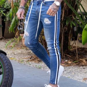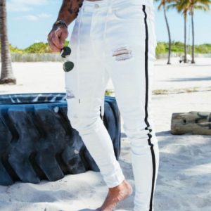 Element:Denim,Raged Hem,Ripped,Printing,Striped