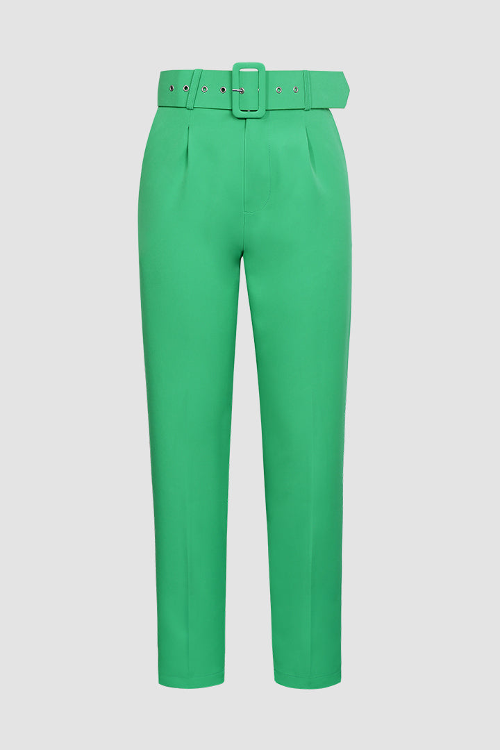 Green Belted Straight Pants