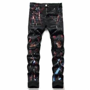 Personality Hole Print Boyfriend Black Skinny Jeans